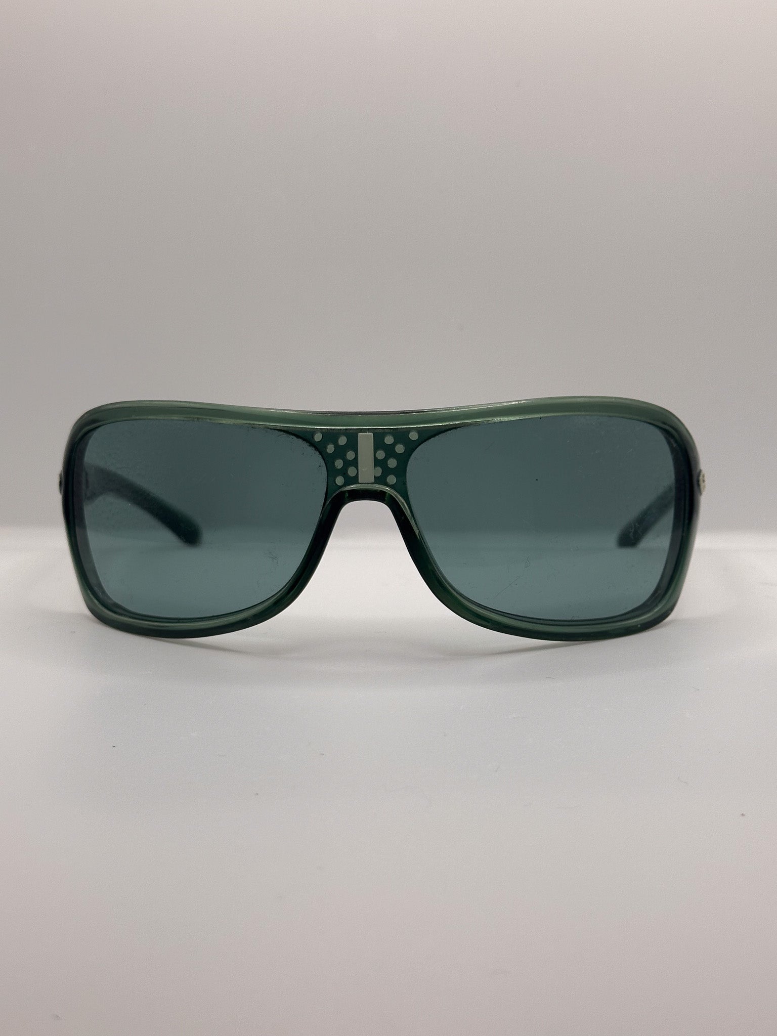 Green, wrap-around frame. Made in Italy, 1990s. Original monochrome lenses.