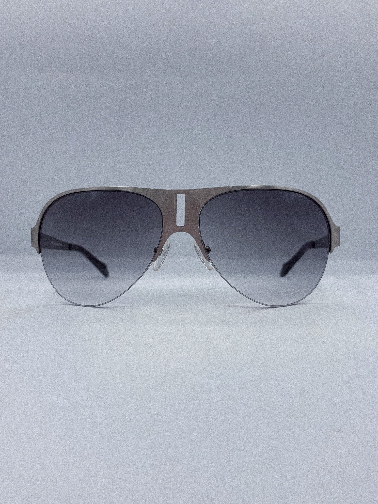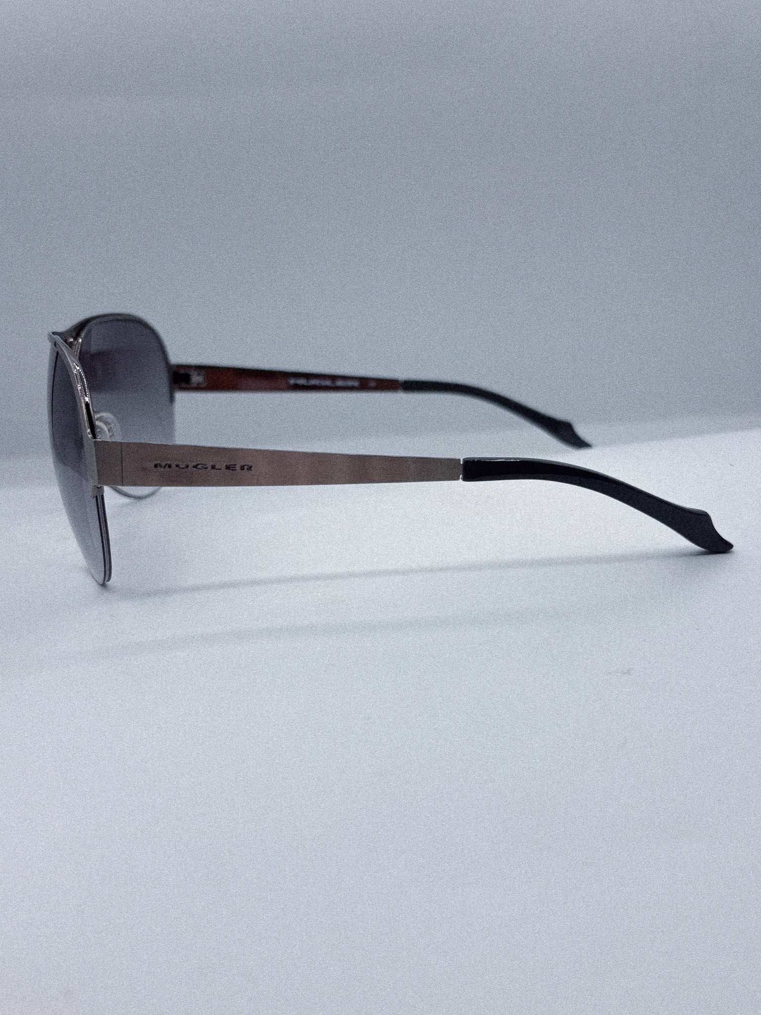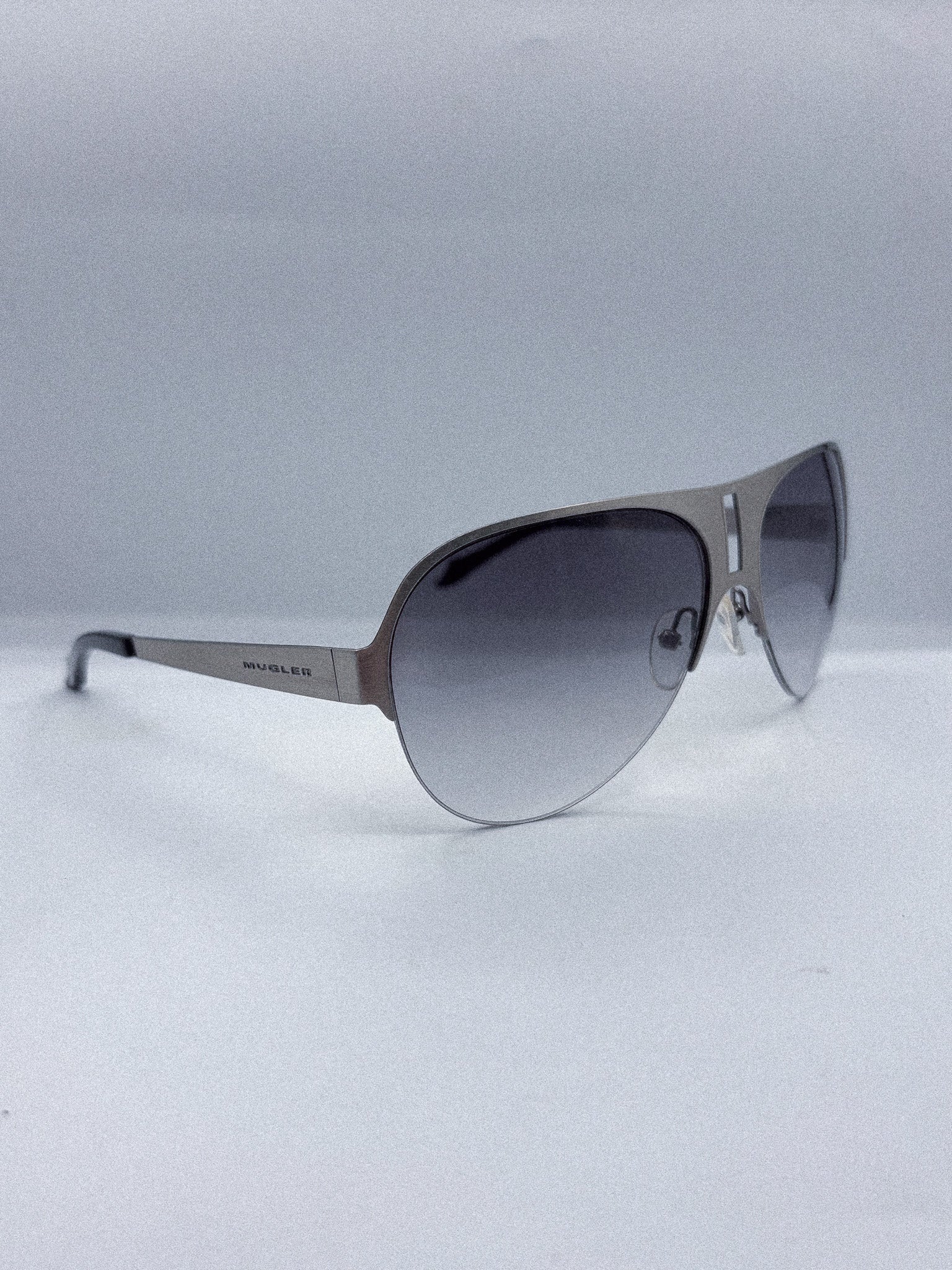 At the turn of the millennium, Mugler eyewear embraced a stripped-down, aerodynamic ethos—taking cues from aerospace and architecture. This sculpted titanium aviator features a monoblock cutout bridge and exaggerated teardrop lenses. The result: minimalism with edge, elegance with impact. Pure Mugler futurism.