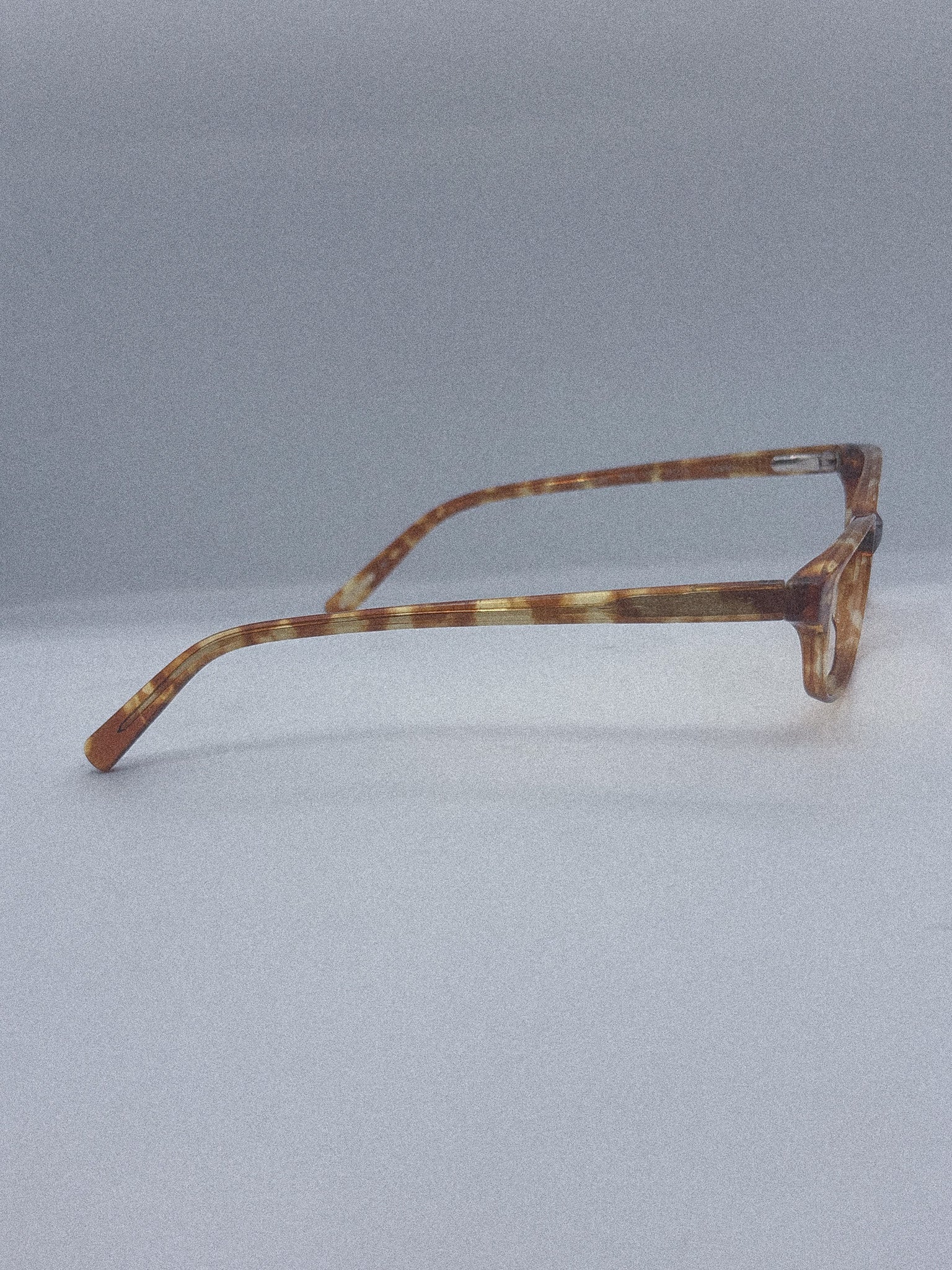 Frame Model: Rectangular silhouette in warm tortoise acetate