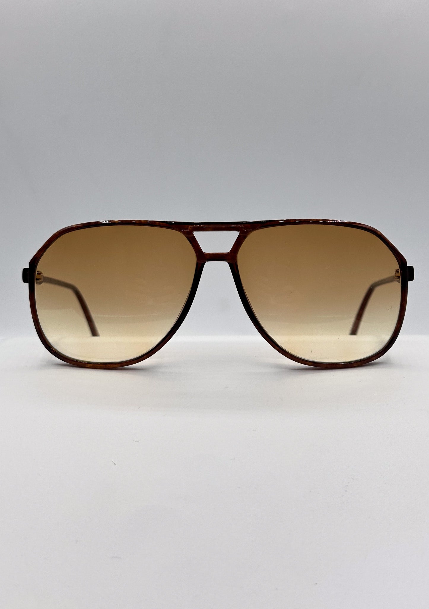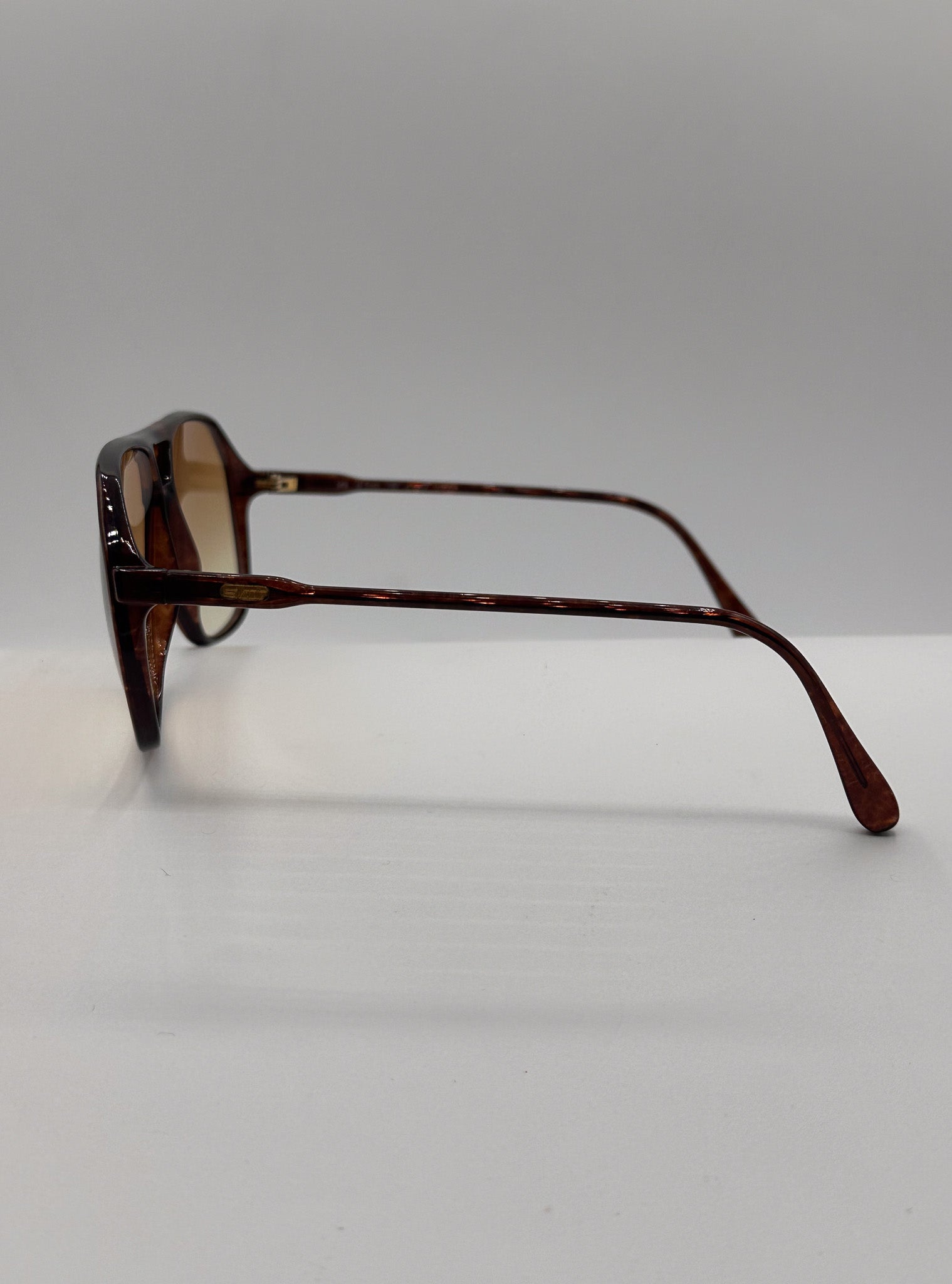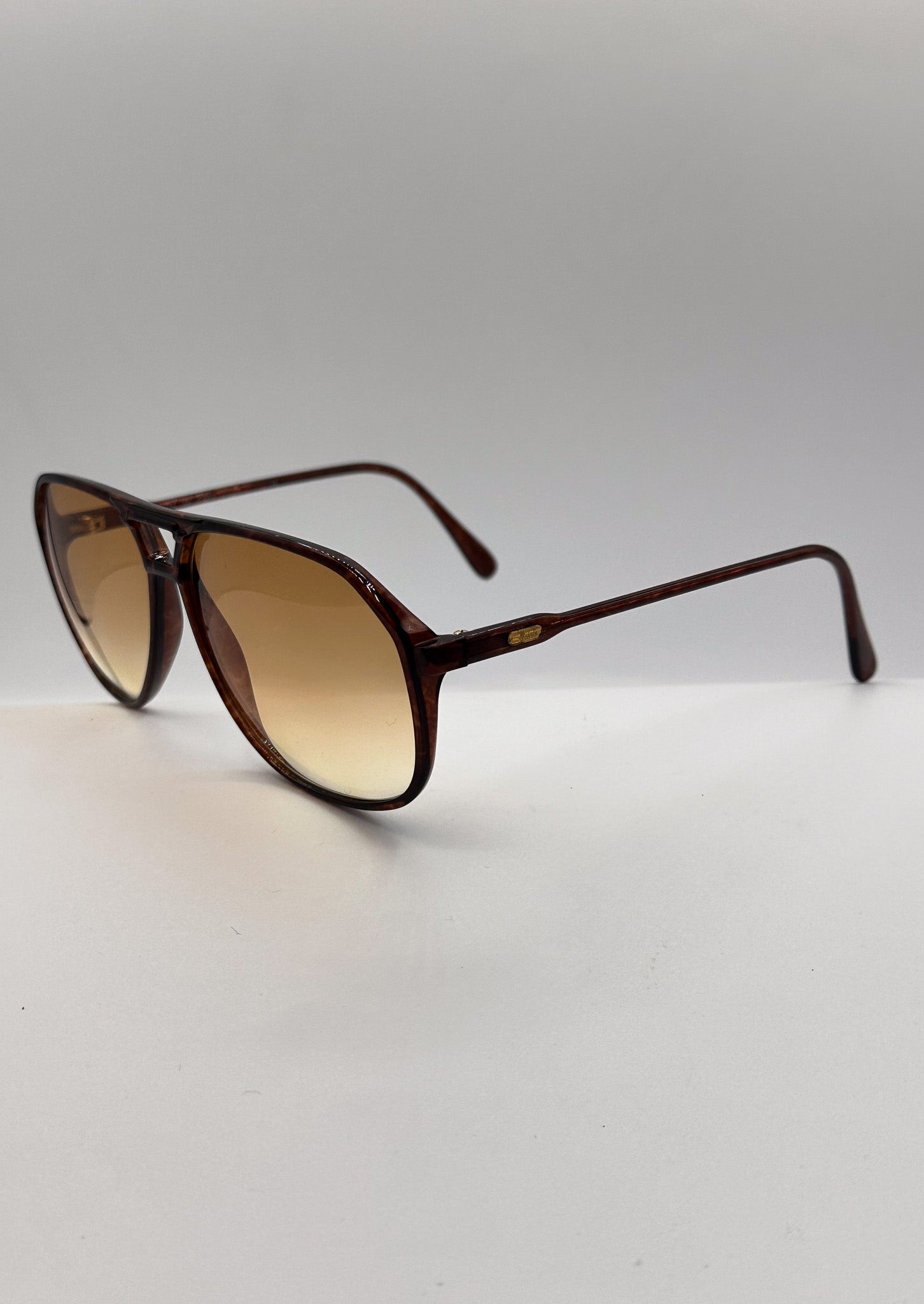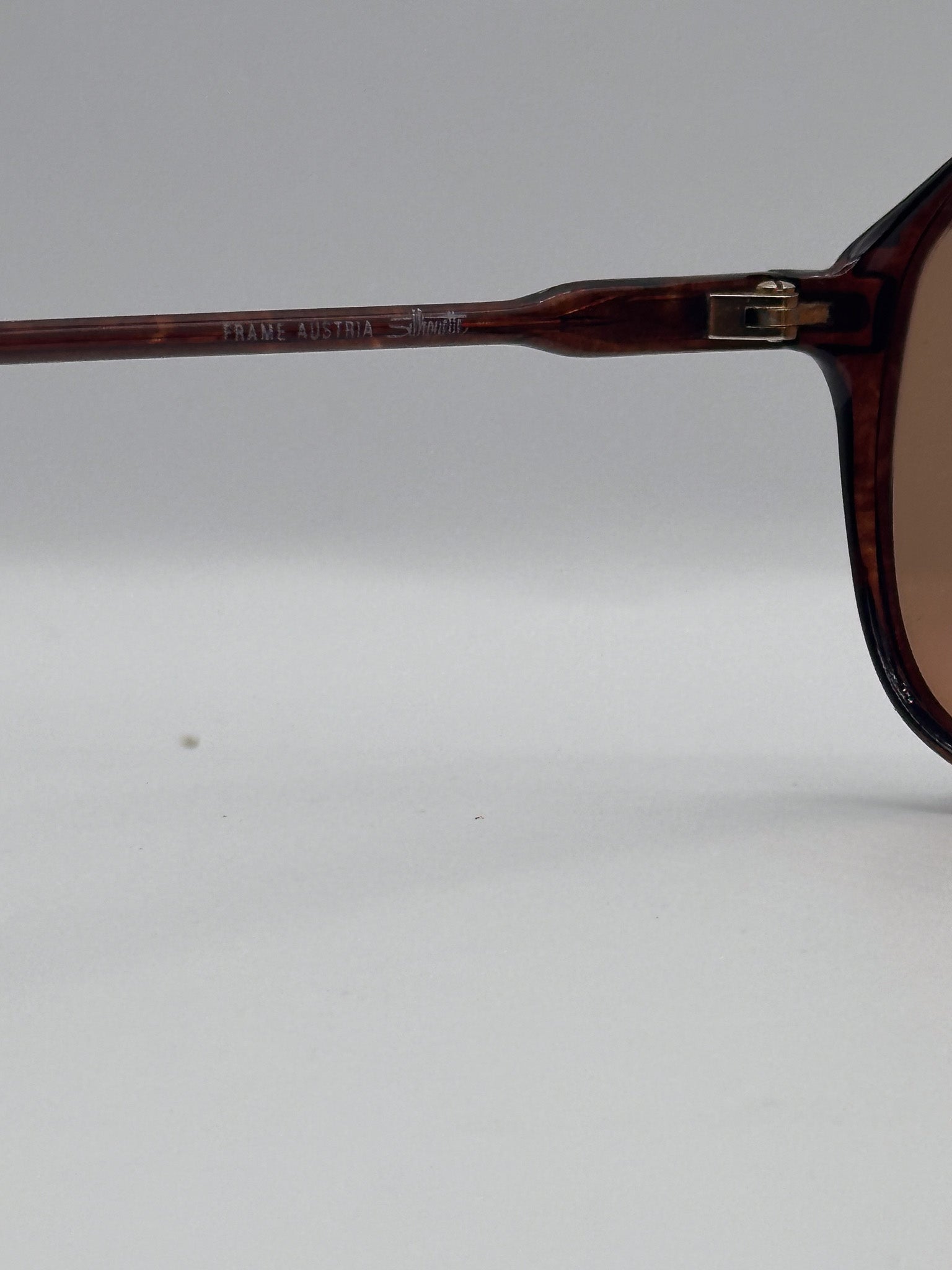 Vintage 1970s Silhouette brown acetate frame with new brown/yellow/orange gradient lenses. Made in Austria. Unisex.