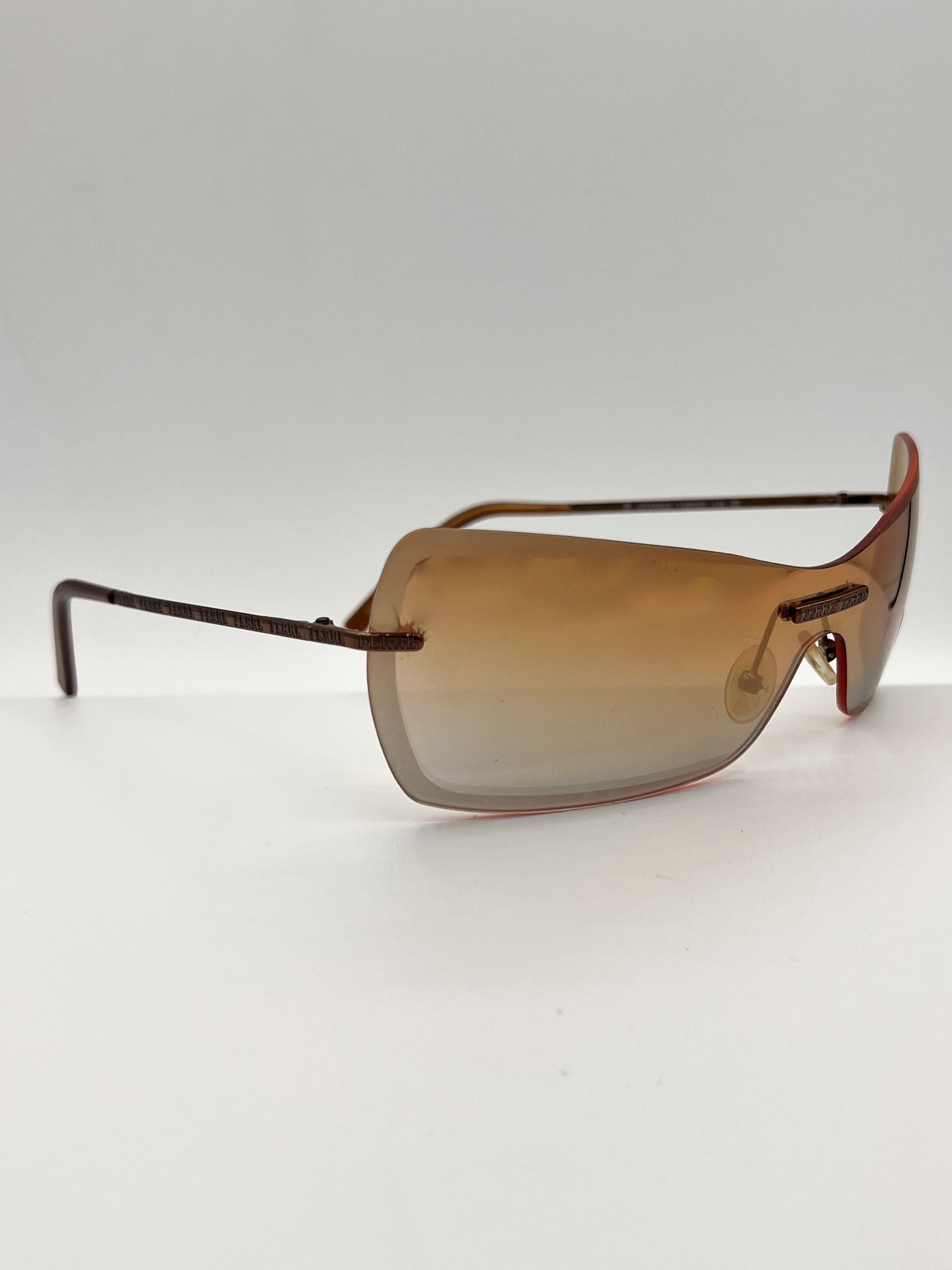 1990s Gianfranco Ferre shield glasses with reflective polarized lenses. OG lenses. Made in Italy.