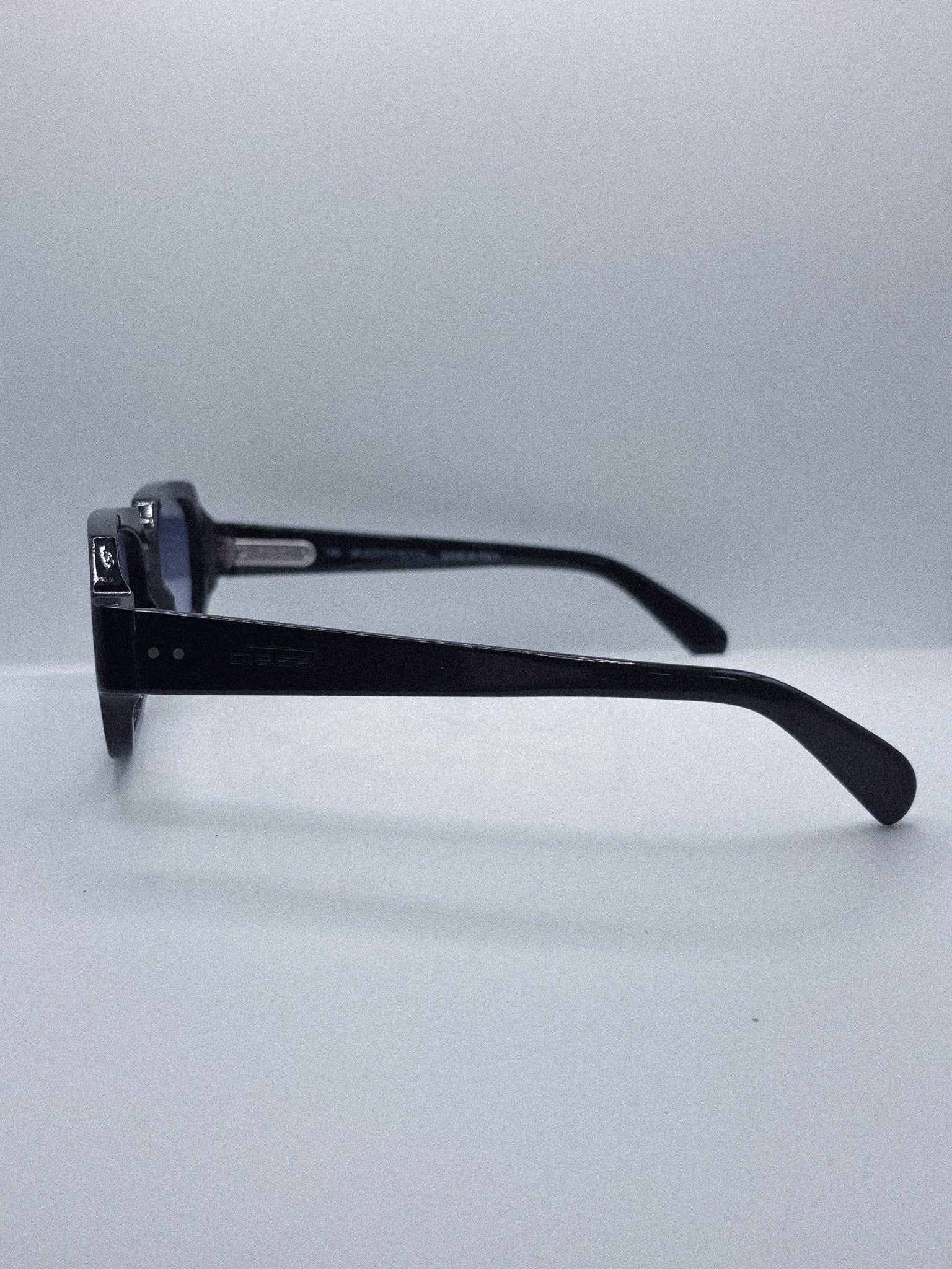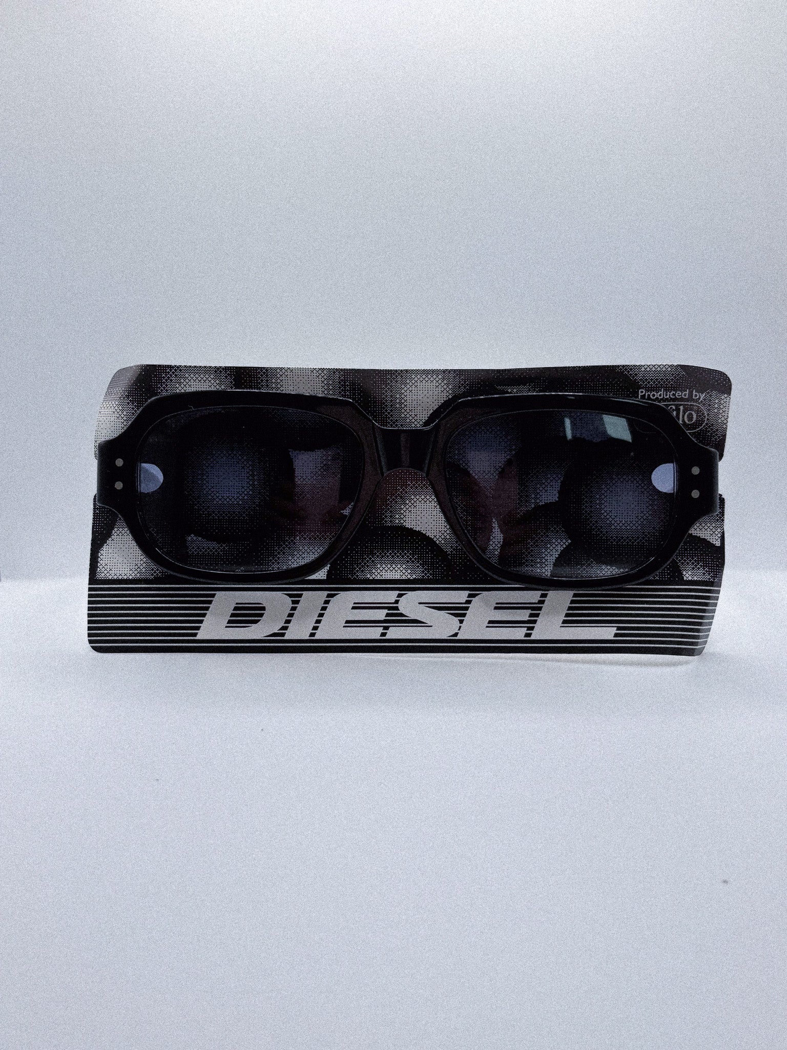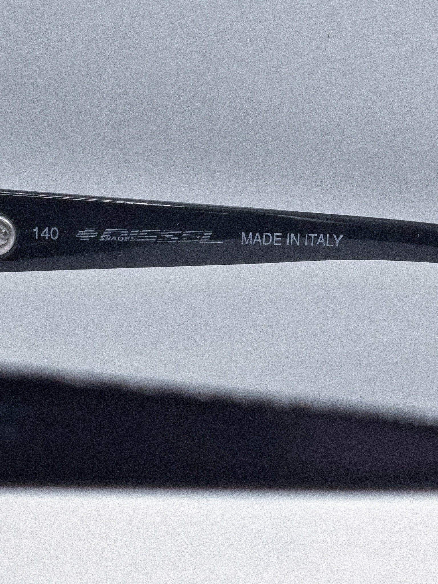 Deadstock 1990s–2000s Diesel frames made in Italy, featuring bold geometric lines and blue gradient lenses. A collectible piece blending structure with understated rebellion.