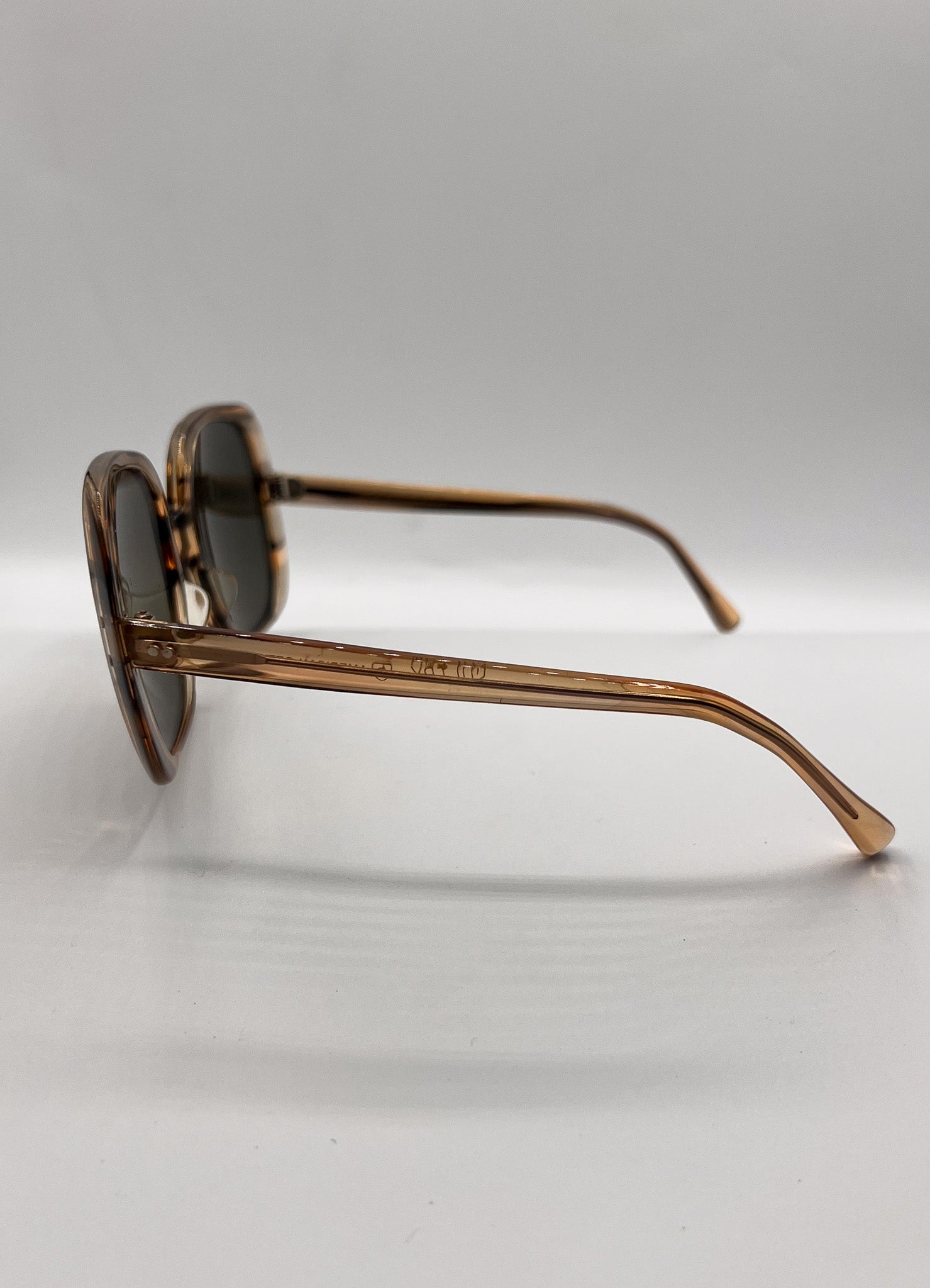 1970s American Optical sunglasses! Part of their "Sunvogues" collection in the 1970s. They consciously distinguisinged their product fro cheap sunglasses, the company contrasted its wel-engineerd, reinforced frames with those "slide-down-your-nose-push-them-up-again" frames. Advertised as being 'for the woman who dares to be different ... and those who are thinking about it'. This frame is called Sultry.