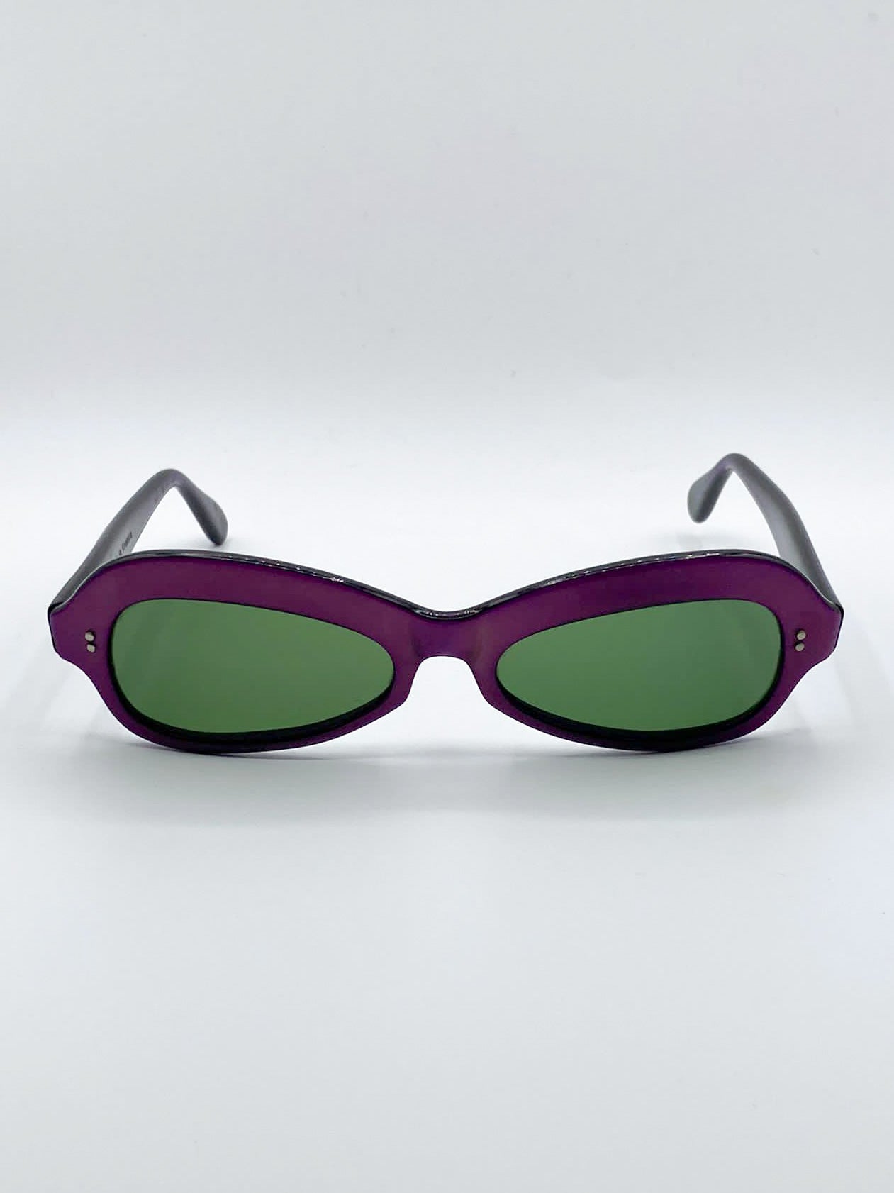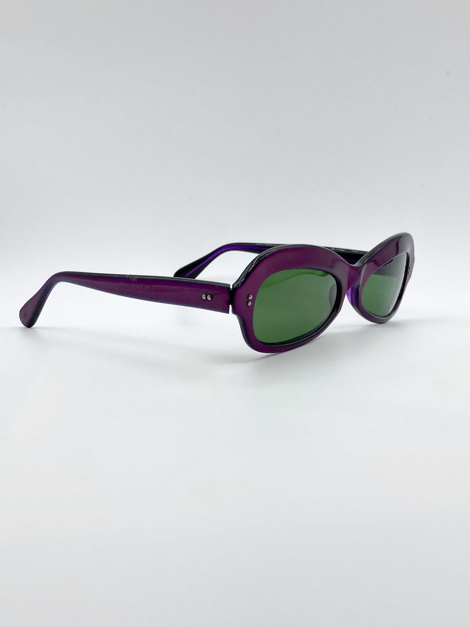 Purple acetate frames made in the 1960s in France. Combined with a deep green lense. Retro and chic. No apparent signs of wear, great condition.
