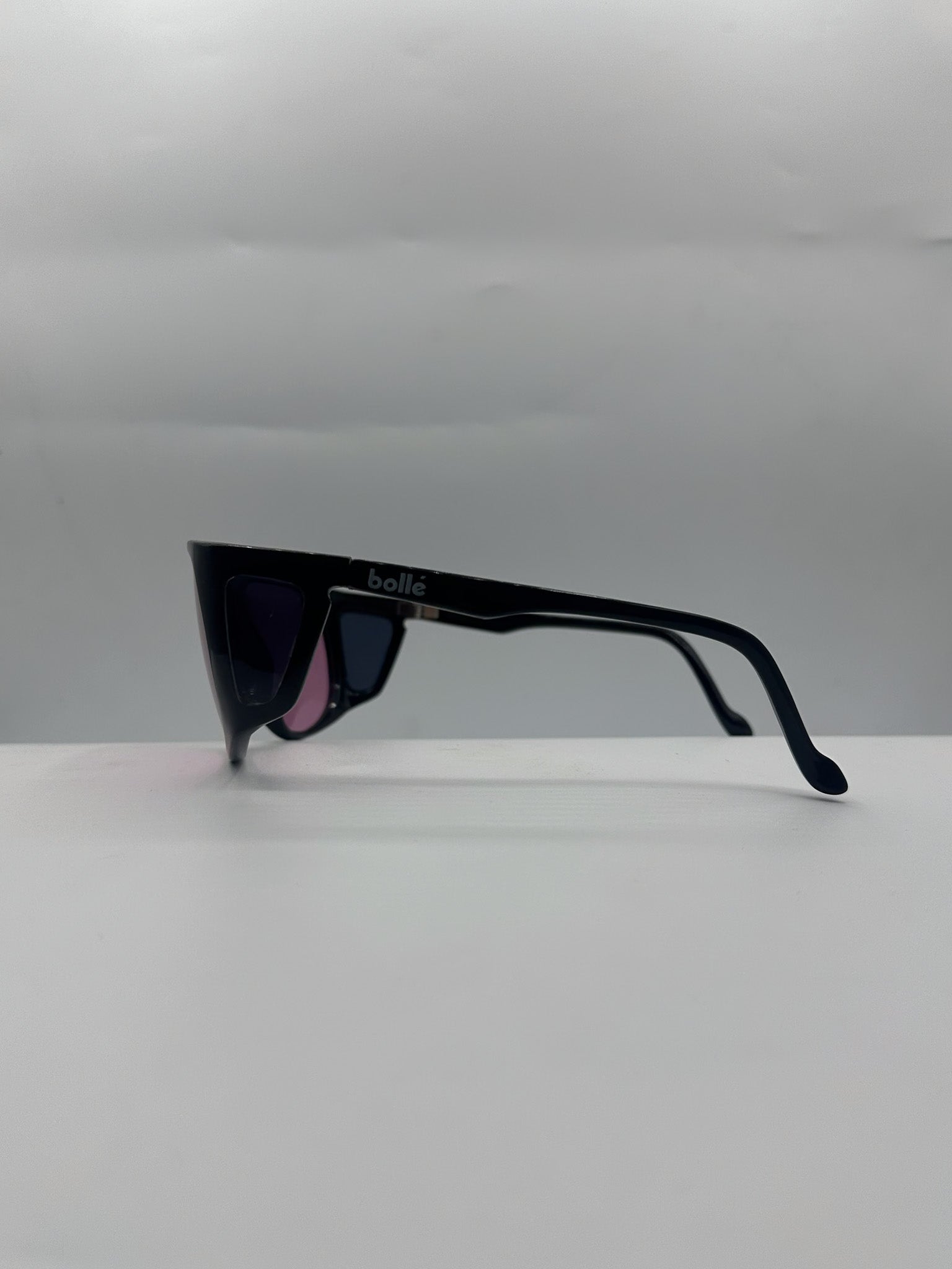 A sleek fusion of sport and style straight from the 1980s. These vintage Bolle sunglasses boast a streamlined silhouette with an aerodynamic edge, perfectly tailored for both active and street-ready looks. The bold black wraparound frame pairs effortlessly with rose-tinted lenses, delivering both visual clarity and undeniable retro flair.