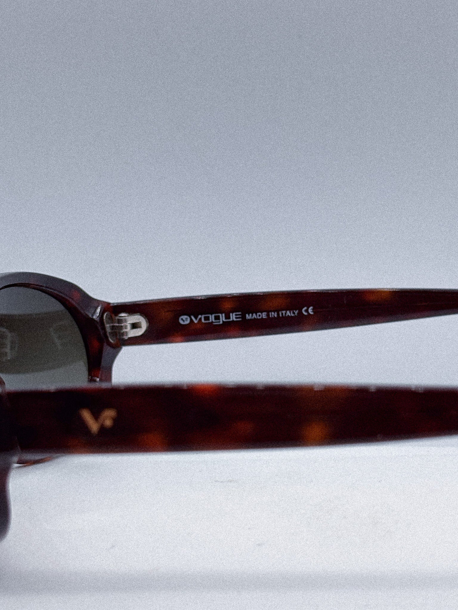 These vintage Vogue sunglasses are pure ‘90s glamour—bold, sleek, and unapologetically stylish. Crafted in Italy, the deep tortoise acetate frame wraps into a sensuous oval shape, offering statement-making design with everyday wearability.