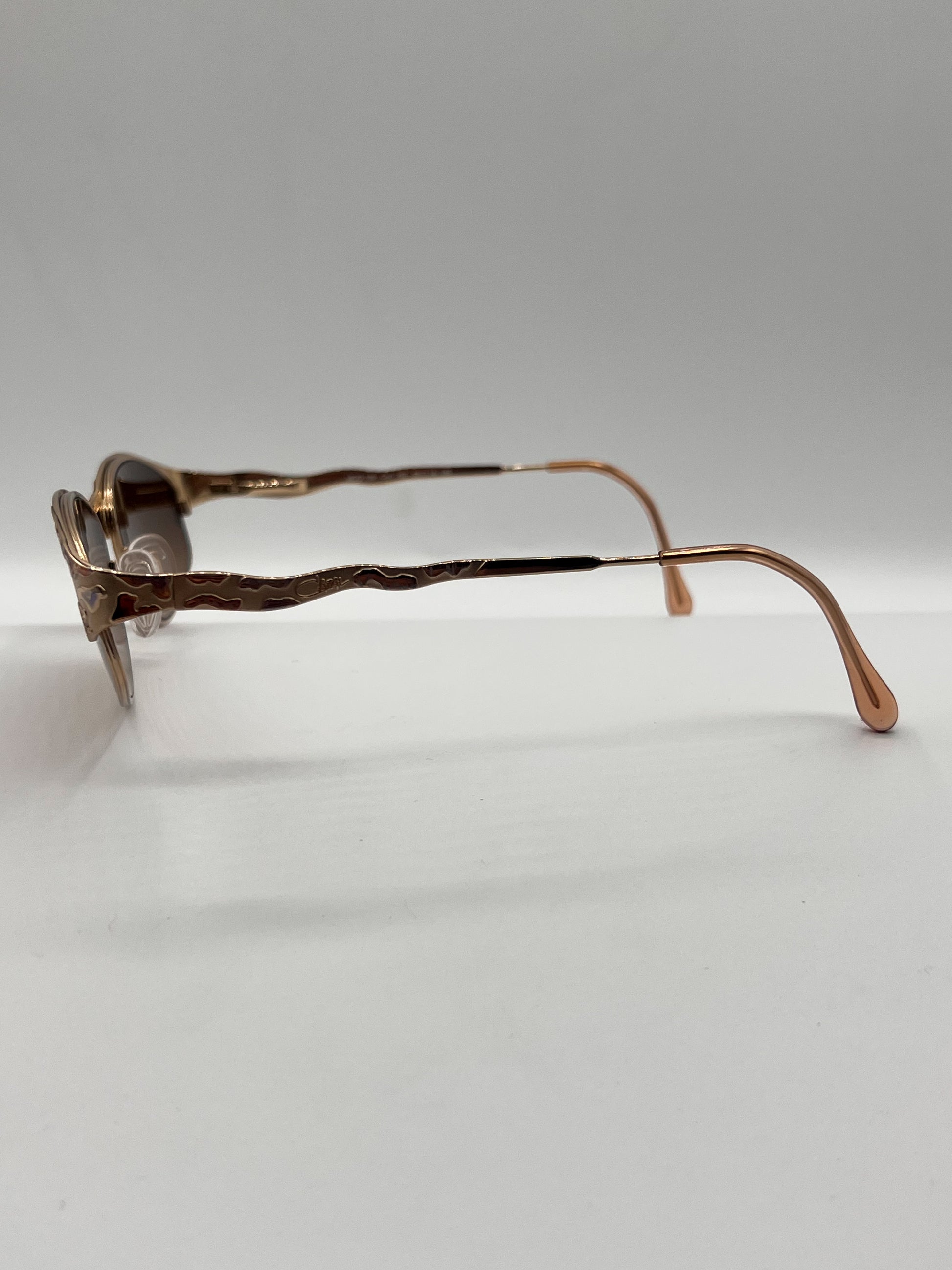 1980s Cazal gold-plated frames. Squiggle lined ear pieces with elevated gold pattern, similar to Dalmatian spots. A testament of Cazal’s true attention to details.