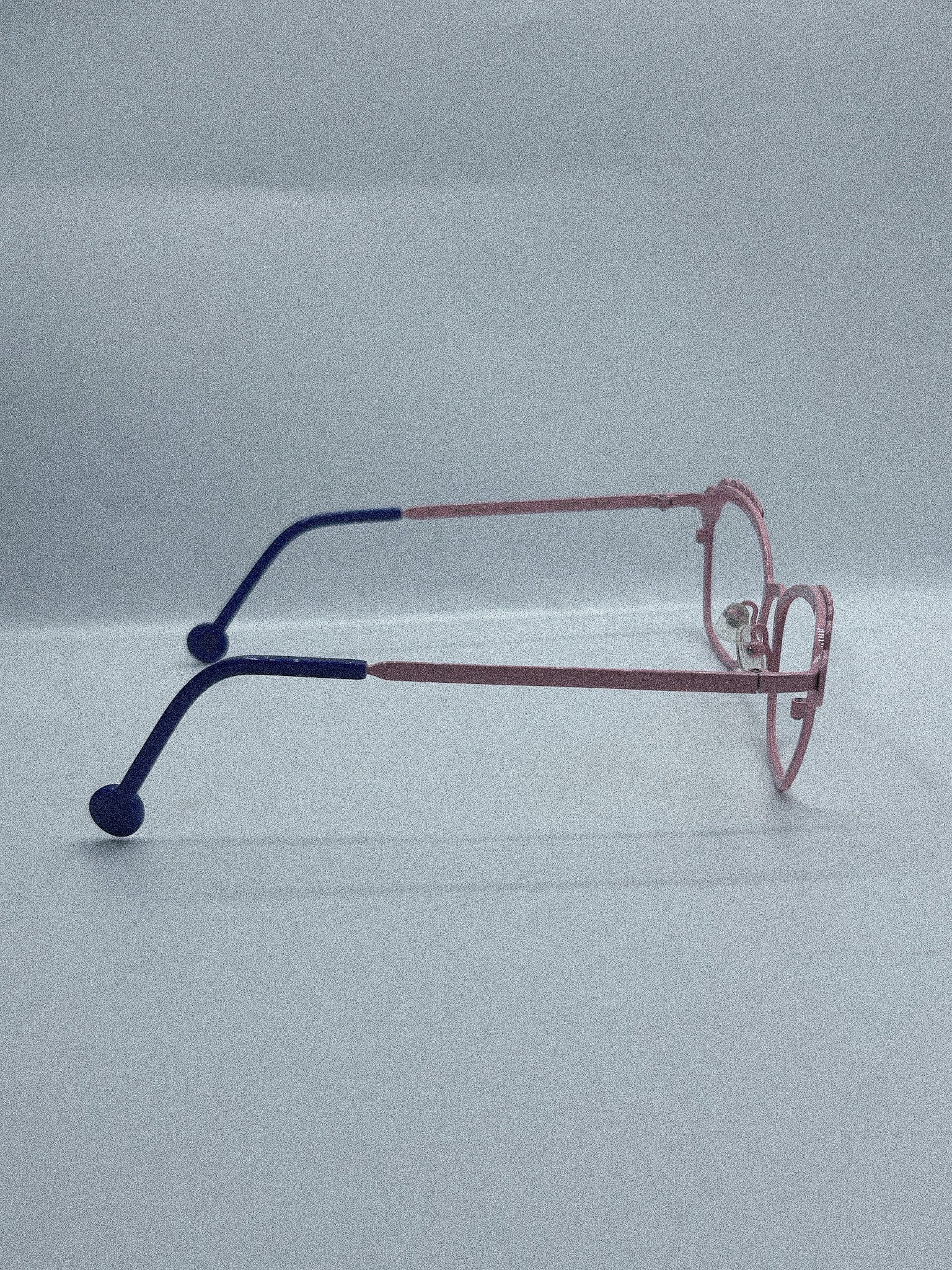 These 1990s LA Eyeworks frames embody the brand’s fearless design philosophy—playful, sculptural, and intelligent. The red and blue color pairing captures the eccentric spirit that defined LA’s eyewear scene during the decade, balancing creativity with sophistication.