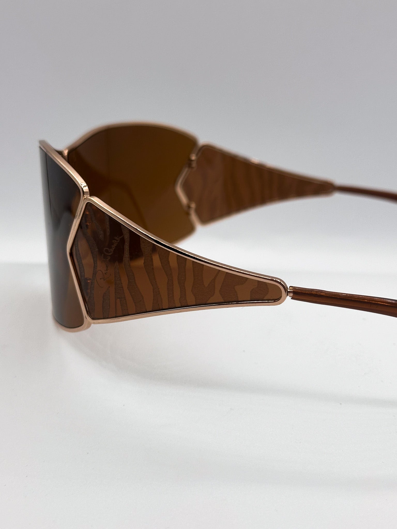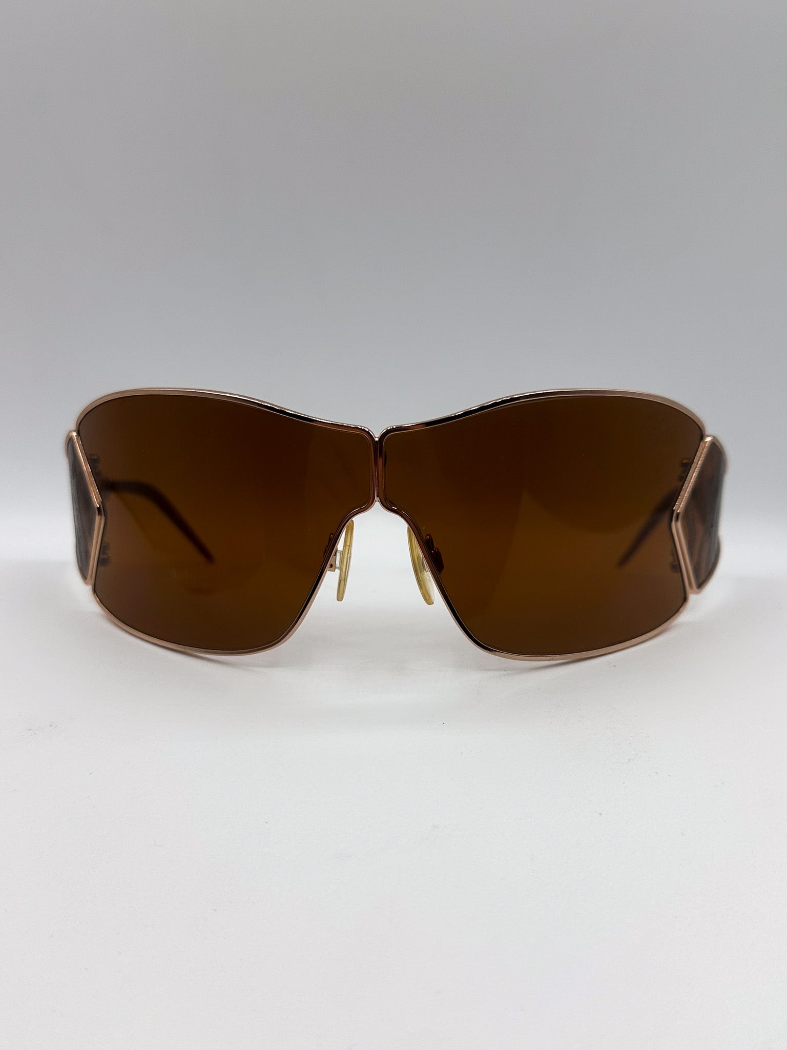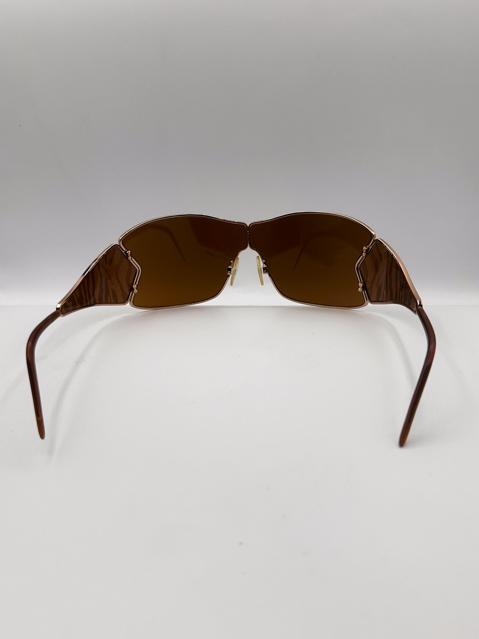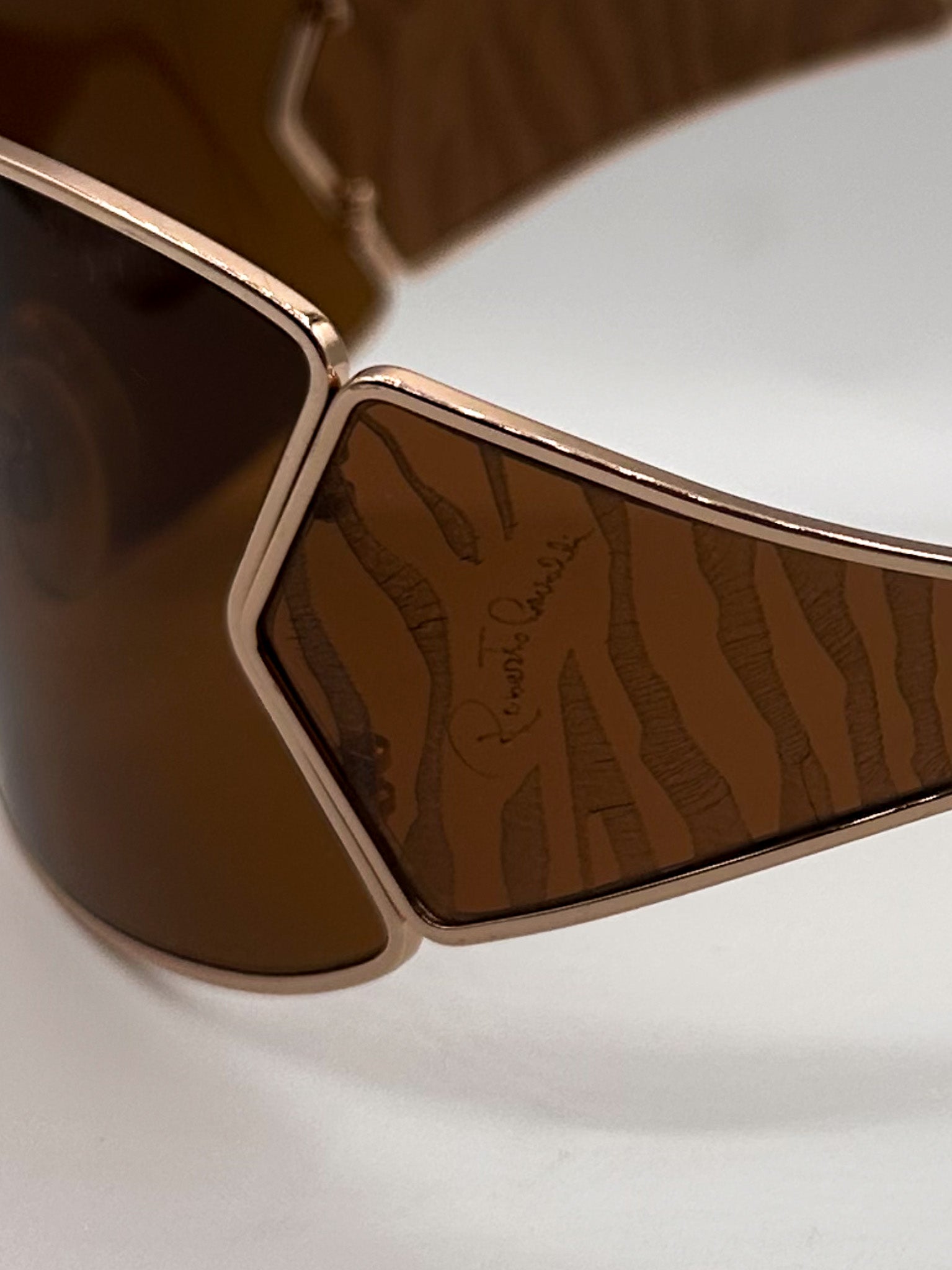 Vintage Roberto Cavalli wrap-around titanium frames with gold trim and a bold silhouette. Wraps around the face, edgy and sexy.